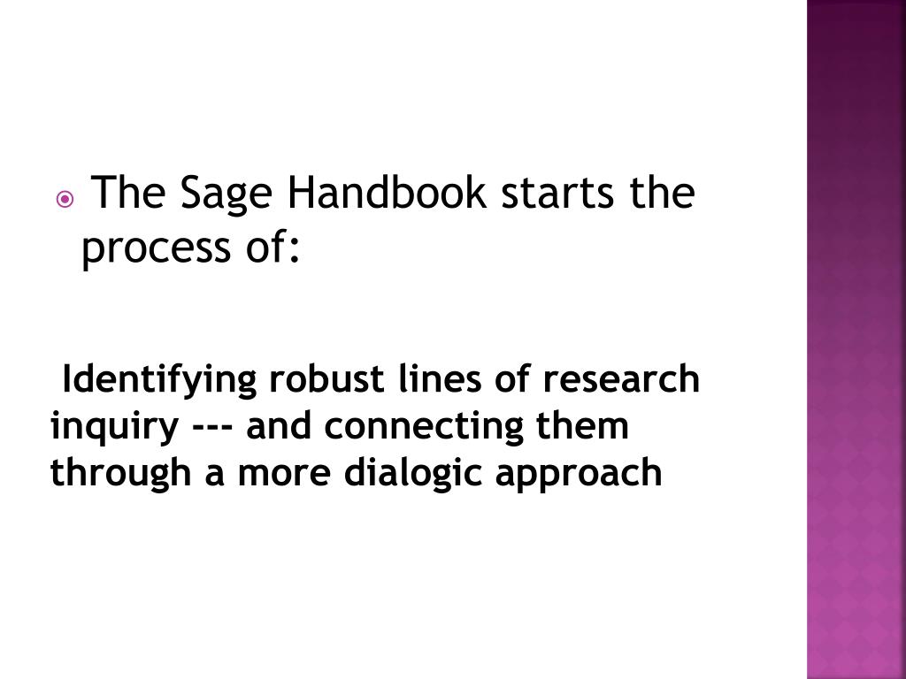 Identifying robust lines of research inquiry --- and connecting them through a more dialogic approach • The Sage Handbook starts the process of:
