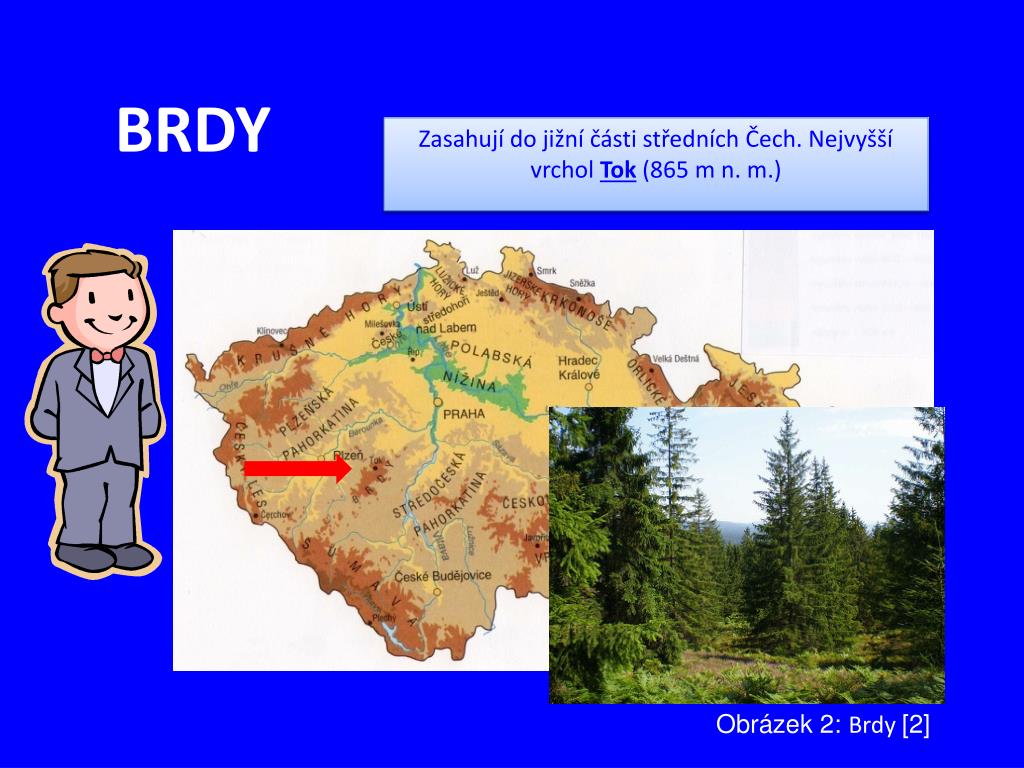 BRDY Zasahují do jižní části středních Čech. Nejvyšší vrchol Tok (865 m n. m.) Obrázek 2: Brdy [2]