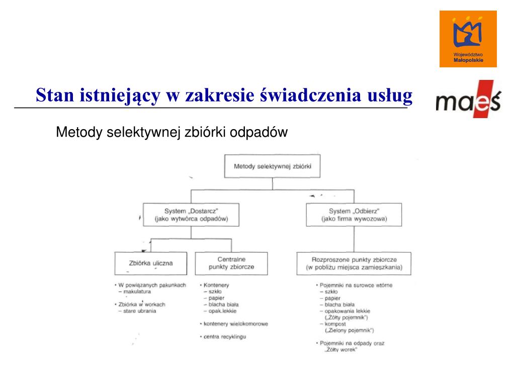 Stan istniejący w zakresie świadczenia usług Metody selektywnej zbiórki odpadów