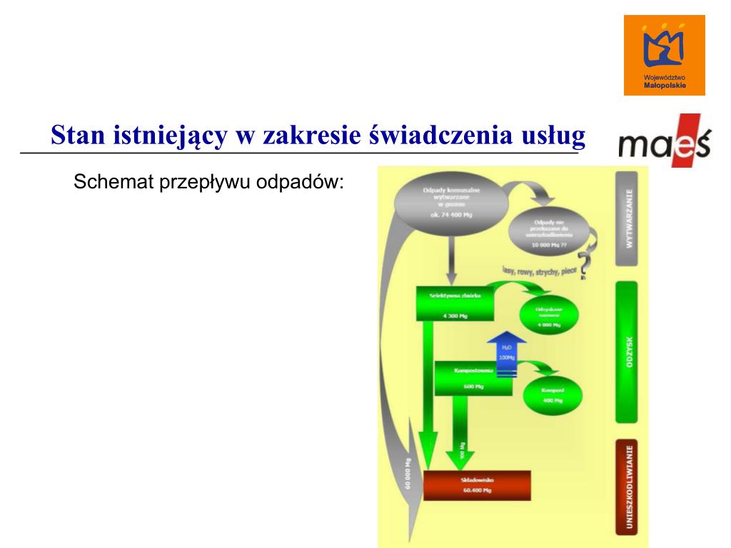 Stan istniejący w zakresie świadczenia usług Schemat przepływu odpadów: