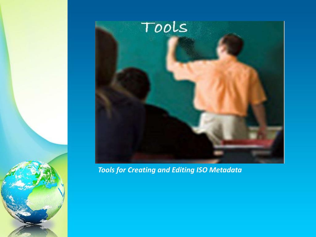 Tools for Creating and Editing ISO Metadata • Various tools created depending on user needs: • Desktop vs. Web Applications • GUI vs. XML