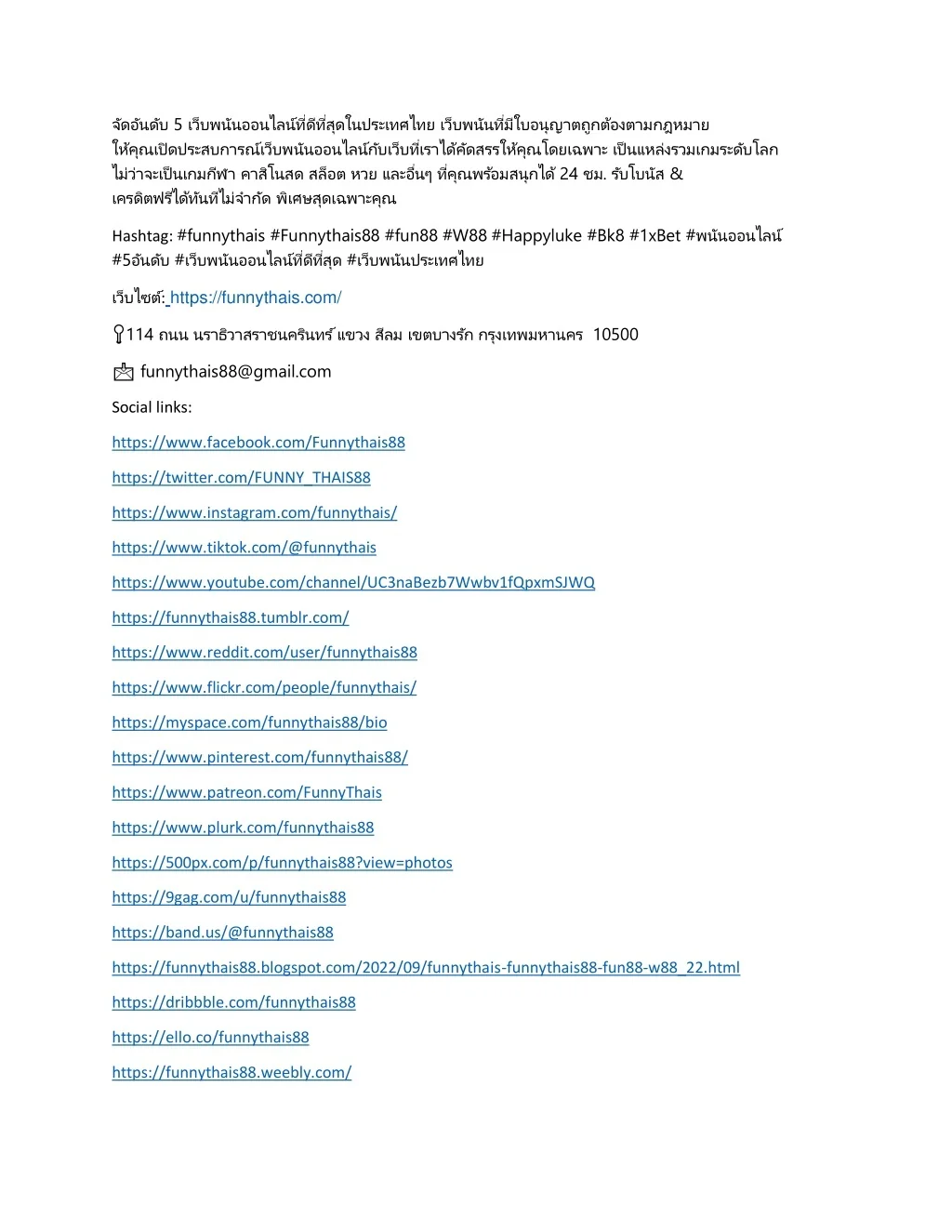 จัดอันดับ 5 เว็บพนันออนไลน์ที่ดีที่สุดในประเทศไทยเว็บพนันที่มีใบอนุญาตถูกต้องตามกฎหมาย ให้คุณเปิดประสบการณ์เว็บพนันออนไลน์กับเว็บที่เราได้คัดสรรให้คุณโดยเฉพาะเป็นแหล่งรวมเกมระดับโลก ไม่ว่าจะเป็นเกมกีฬาคาสิโนสดสล็อตหวยและอื่นๆที่คุณพร้อมสนุกได้ 24 ชม. รับโบนัส & เครดิตฟรีได้ทันทีไม่จ ากัดพิเศษสุดเฉพาะคุณ Hashtag: #funnythais #Funnythais88 #fun88 #W88 #Happyluke #Bk8 #1xBet #พนันออนไลน์ #5อันดับ #เว็บพนันออนไลน์ที่ดีที่สุด #เว็บพนันประเทศไทย เว็บไซต์:https://funnythais.com/ ?114 ถนนนราธิวาสราชนครินทร์แขวงสีลมเขตบางรักกรุงเทพมหานคร 10500 ? funnythais88@gmail.com Social links: https://www.facebook.com/Funnythais88 https://twitter.com/FUNNY_THAIS88 https://www.instagram.com/funnythais/ https://www.tiktok.com/@funnythais https://www.youtube.com/channel/UC3naBezb7Wwbv1fQpxmSJWQ https://funnythais88.tumblr.com/ https://www.reddit.com/user/funnythais88 https://www.flickr.com/people/funnythais/ https://myspace.com/funnythais88/bio https://www.pinterest.com/funnythais88/ https://www.patreon.com/FunnyThais https://www.plurk.com/funnythais88 https://500px.com/p/funnythais88?view=photos https://9gag.com/u/funnythais88 https://band.us/@funnythais88 https://funnythais88.blogspot.com/2022/09/funnythais-funnythais88-fun88-w88_22.html https://dribbble.com/funnythais88 https://ello.co/funnythais88 https://funnythais88.weebly.com/