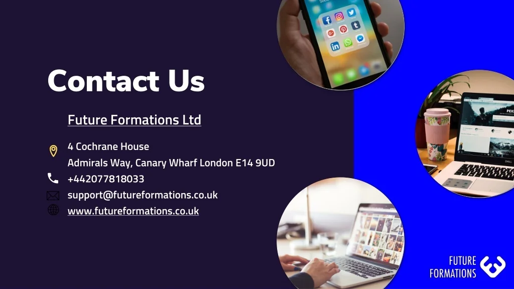 Contact Us • Future Formations Ltd • 4 Cochrane House • Admirals Way, Canary Wharf London E14 9UD • +442077818033 • support@futureformations.co.uk • www.futureformations.co.uk