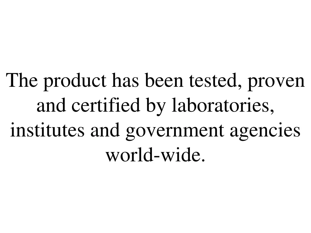 The product has been tested, proven and certified by laboratories, institutes and government agencies world-wide.