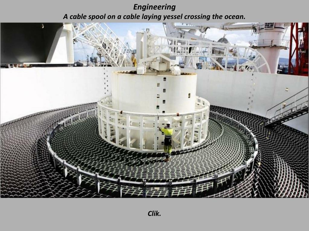 Engineering A cable spool on a cable laying yessel crossing the ocean. Clik.