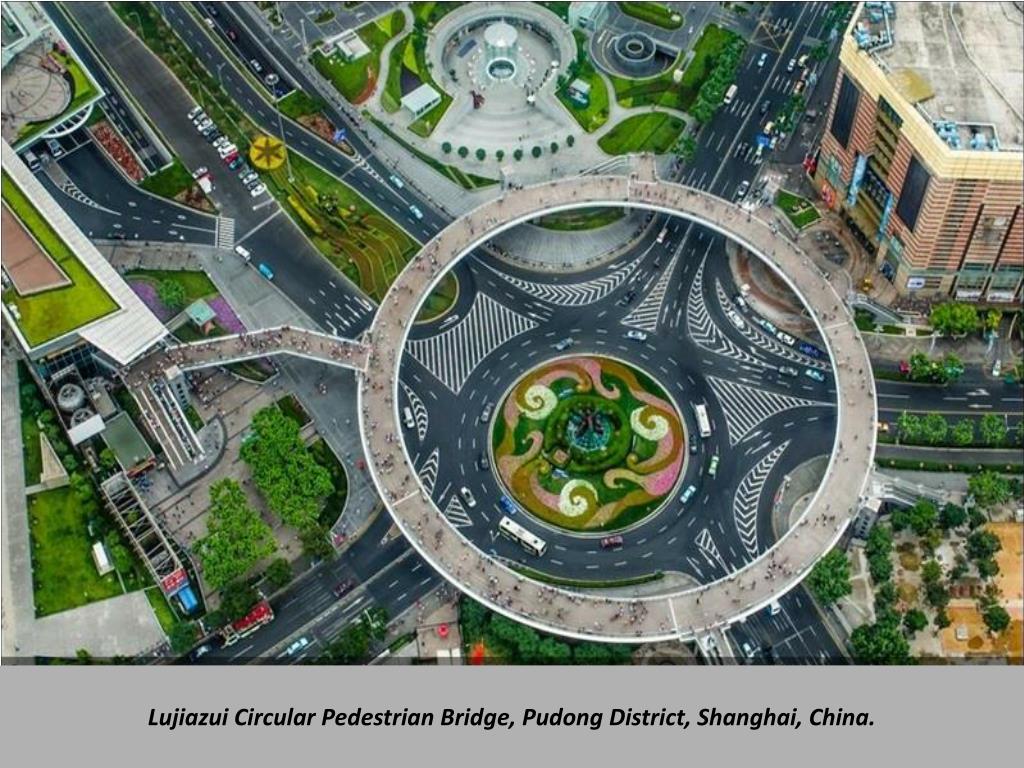 Lujiazui Circular Pedestrian Bridge, Pudong District, Shanghai, China.