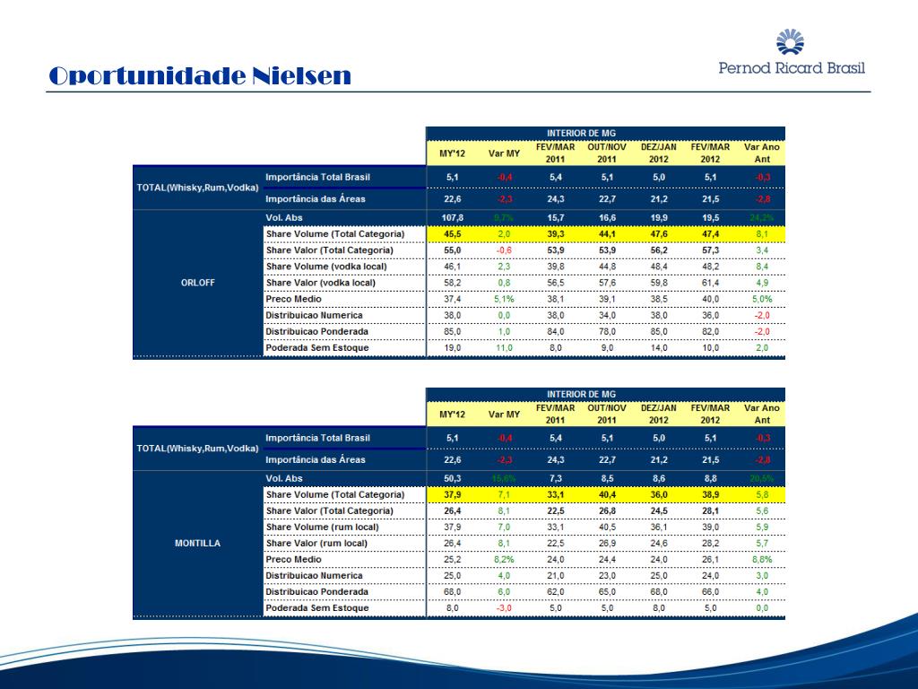 Resultado sell out volume caixas Ficamos flat VS 4º tri de 2011 Crescimento de 80% VS 1º tri de 2011