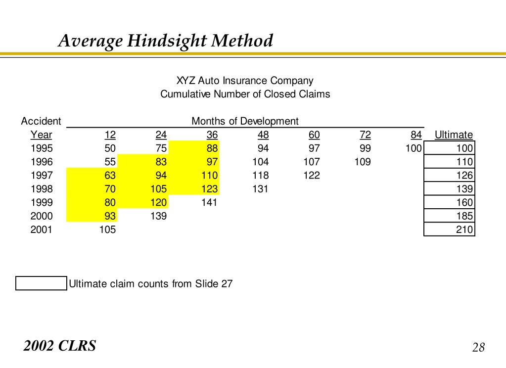 Average Incremental Paid Method Ultimate claim counts derived in average hindsight method - Slide 28