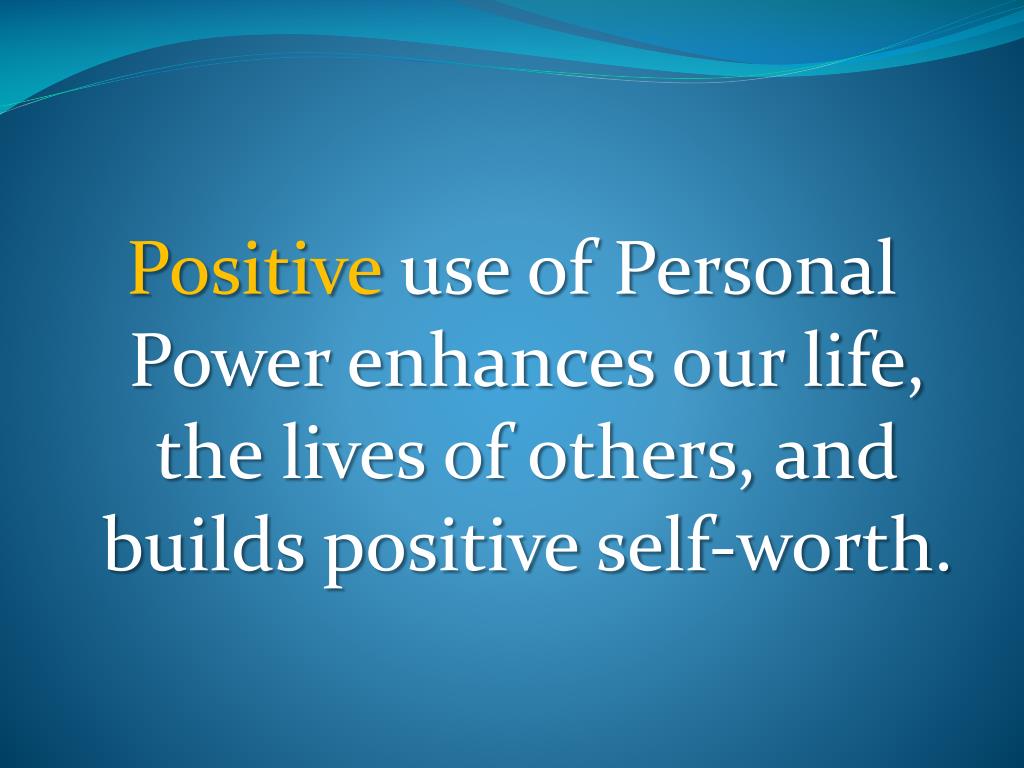 Positive use of Personal Power enhances our life, the lives of others, and builds positive self-worth.