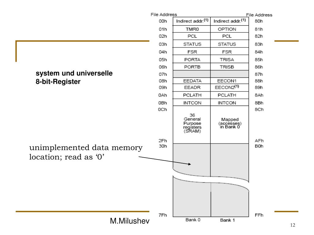 REGISTER FILE MAP system und universelle 8-bit-Register unimplemented data memory location; read as ‘0’
