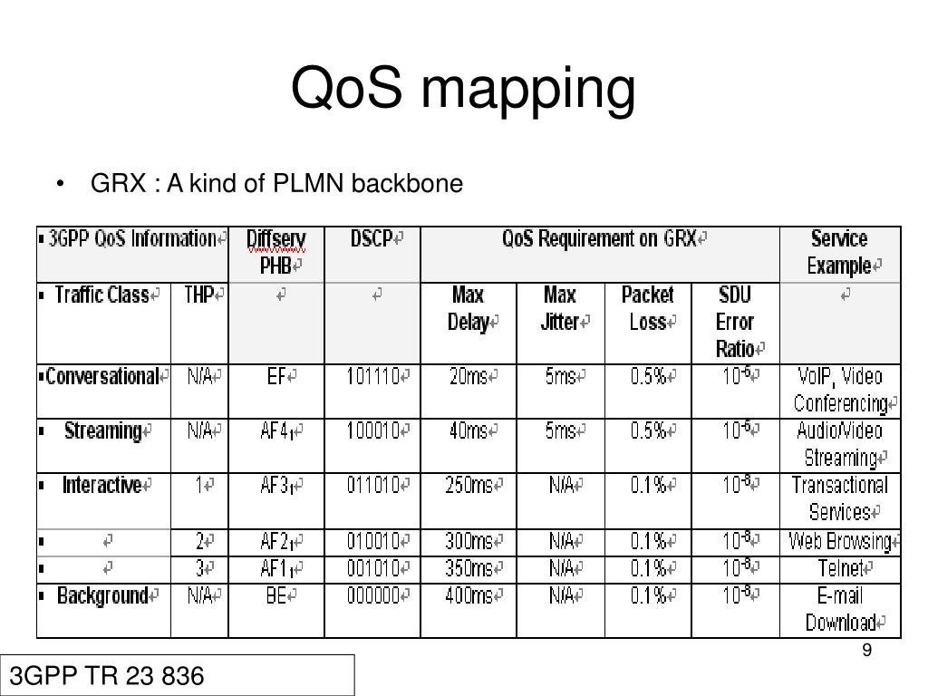 QoS mapping • GRX : A kind of PLMN backbone 3GPP TR 23 836
