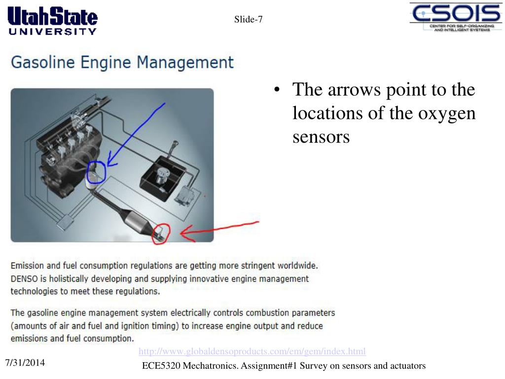 http://www.globaldensoproducts.com/em/gem/index.html • The arrows point to the locations of the oxygen sensors ECE5320 Mechatronics. Assignment#1 Survey on sensors and actuators