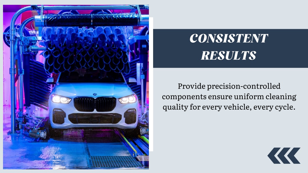 CONSISTENT RESULTS Provide precision-controlled components ensure uniform cleaning quality for every vehicle, every cycle.