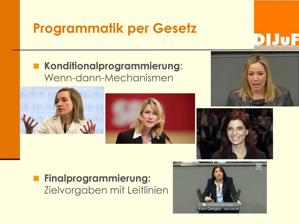 Programmatik per Gesetz • Konditionalprogrammierung: Wenn-dann-Mechanismen • Finalprogrammierung:Zielvorgaben mit Leitlinien