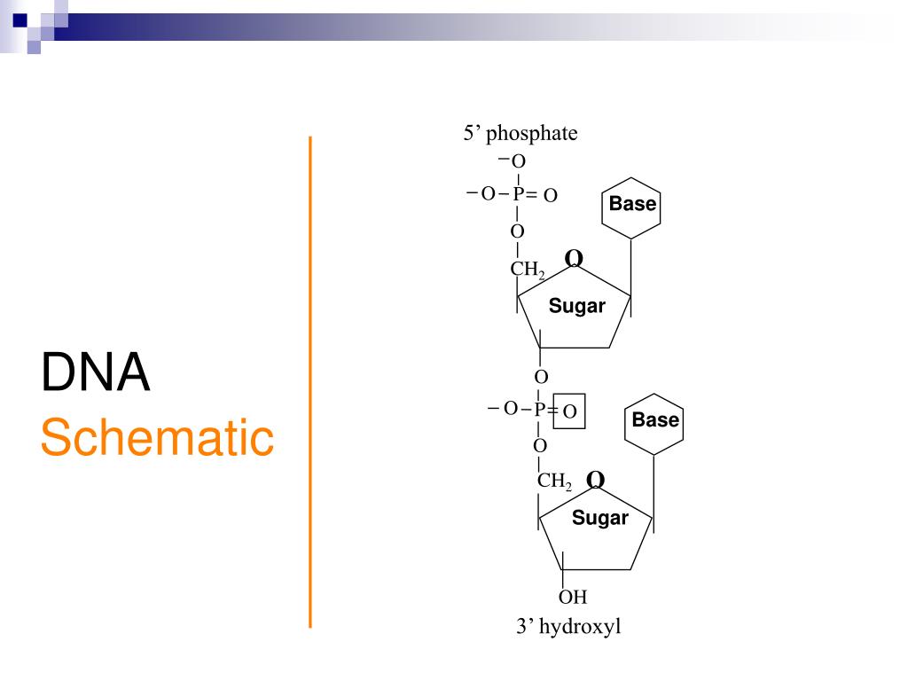 O O P O Base O O CH2 Sugar O O P O Base O O CH2 Sugar OH DNASchematic 5’ phosphate 3’ hydroxyl