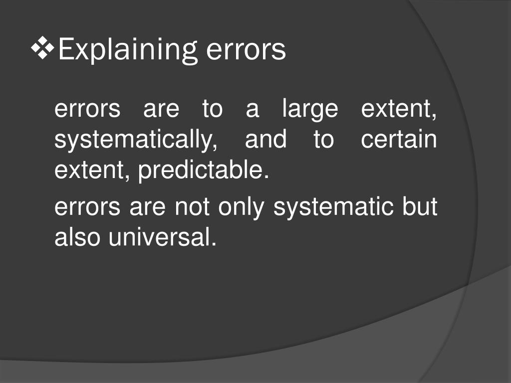 Explaining errors errors are to a large extent, systematically, and to certain extent, predictable. errors are not only systematic but also universal.