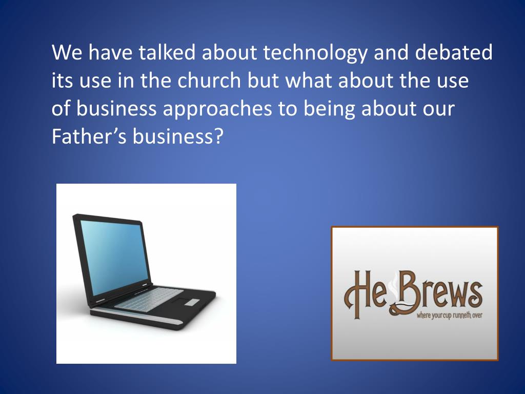 We have talked about technology and debated its use in the church but what about the use of business approaches to being about our Father’s business?
