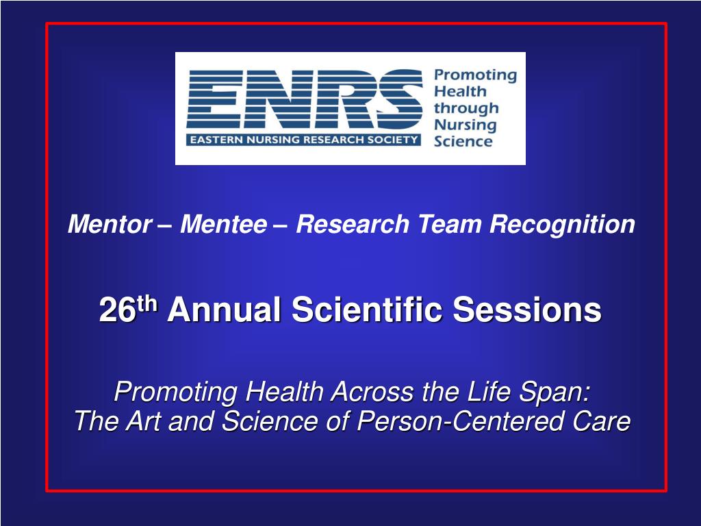 Mentor – Mentee – Research Team Recognition 26th Annual Scientific Sessions Promoting Health Across the Life Span: The Art and Science of Person-Centered Care