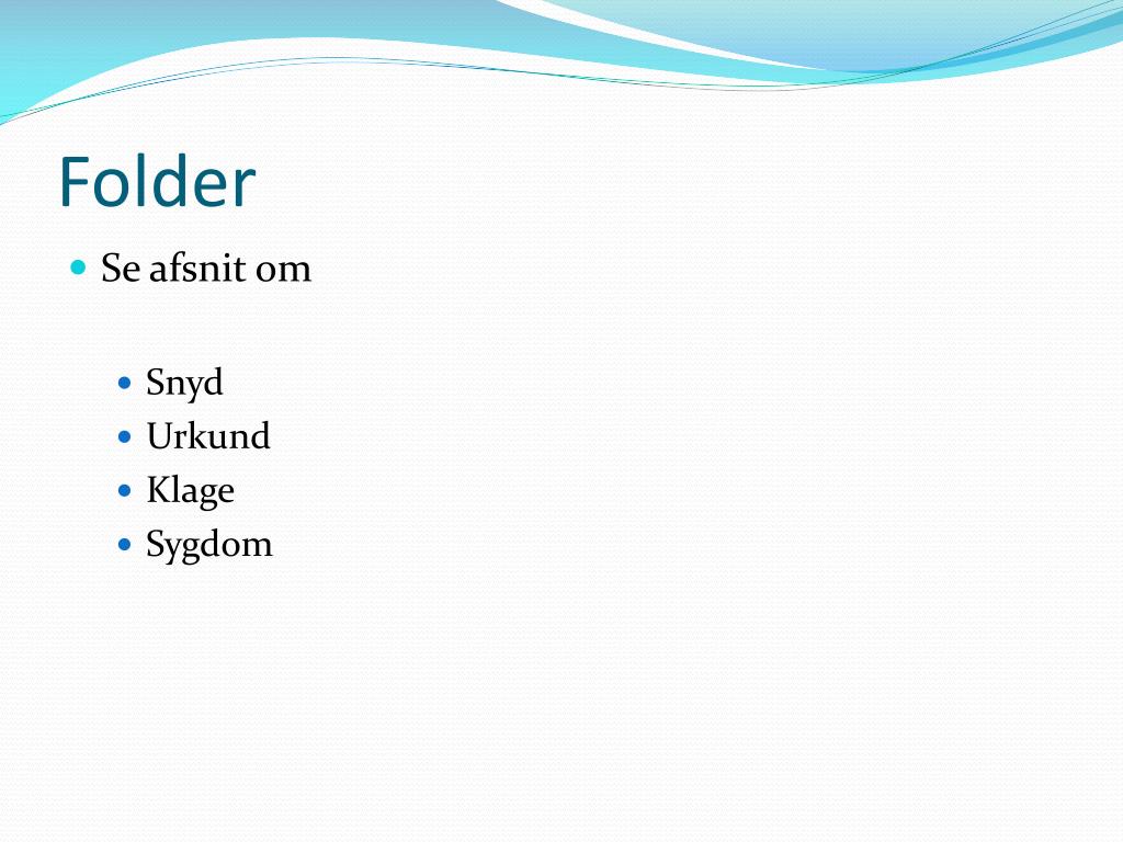 Folder • Se afsnit om • Snyd • Urkund • Klage • Sygdom