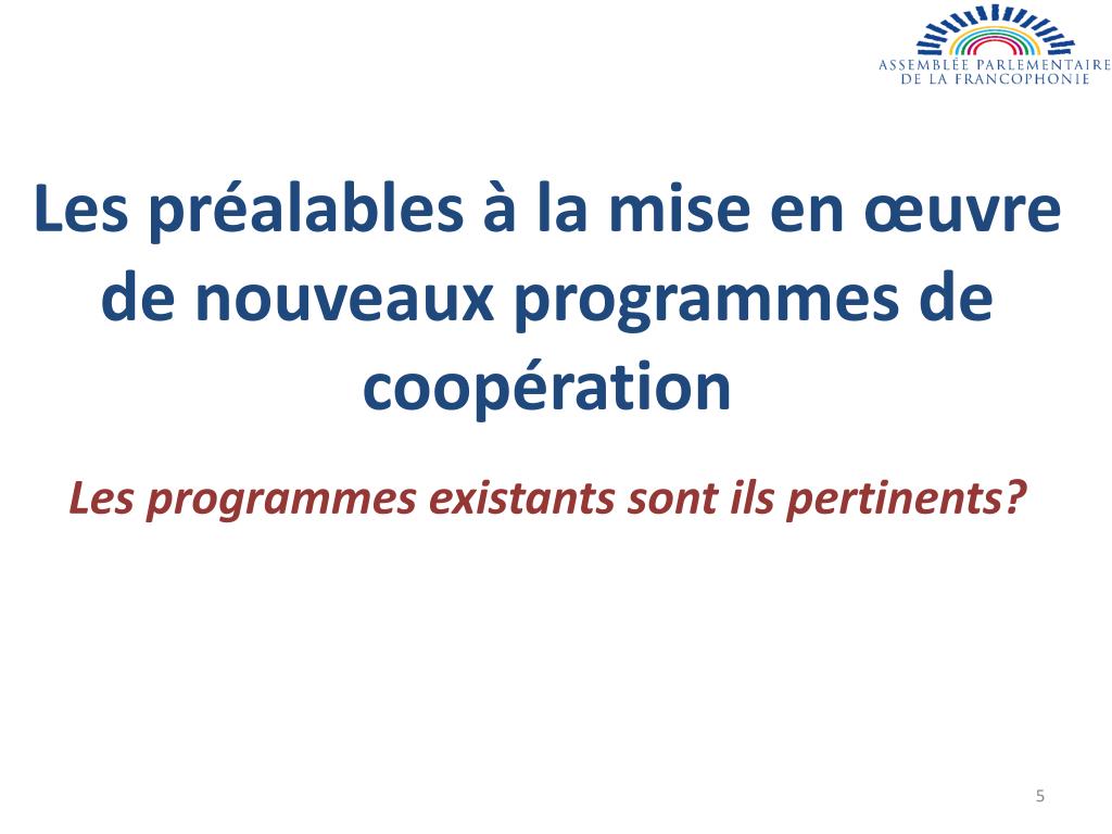 Les préalables à la mise en œuvre de nouveaux programmes de coopération Les programmes existants sont ils pertinents?