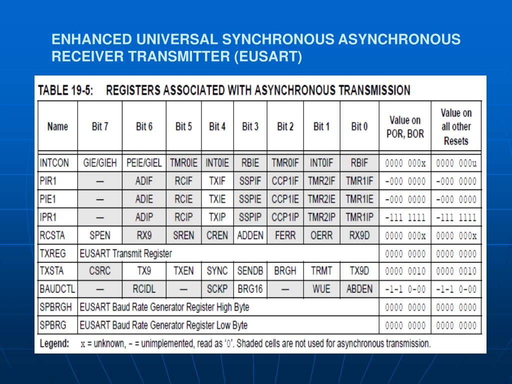 ENHANCED UNIVERSAL SYNCHRONOUS ASYNCHRONOUS RECEIVER TRANSMITTER (EUSART)