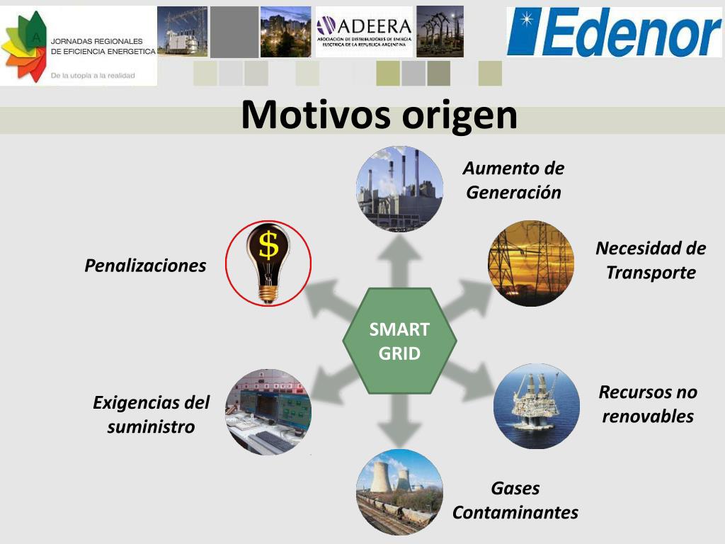 Motivosorigen Aumento de Generación Necesidad de Transporte Penalizaciones SMART GRID Recursos no renovables Exigencias del suministro Gases Contaminantes