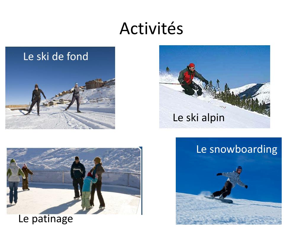 Activités Le ski de fond Le ski alpin Le snowboarding Le patinage