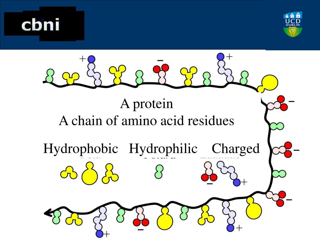 A protein A chain of amino acid residues Hydrophobic Hydrophilic Charged