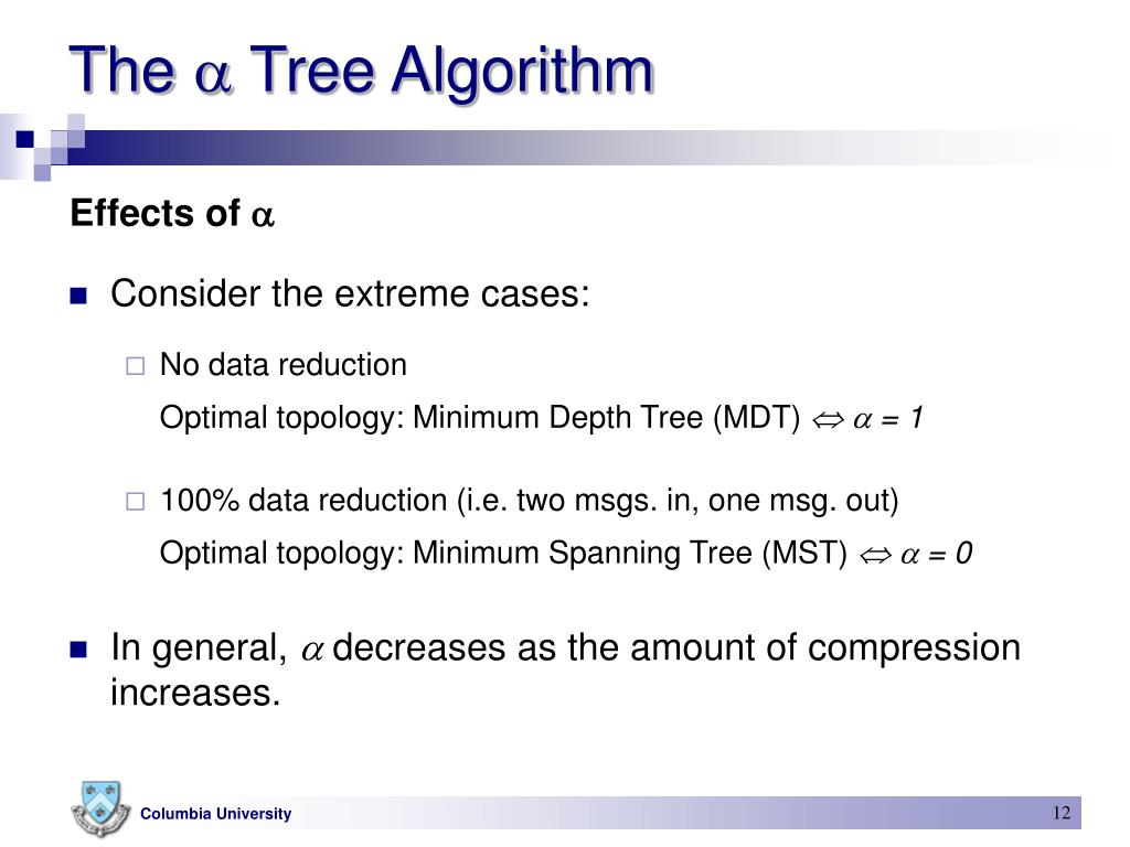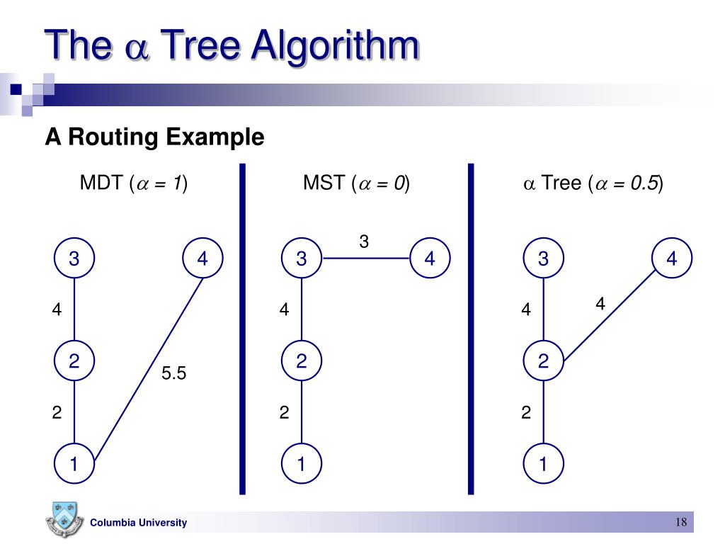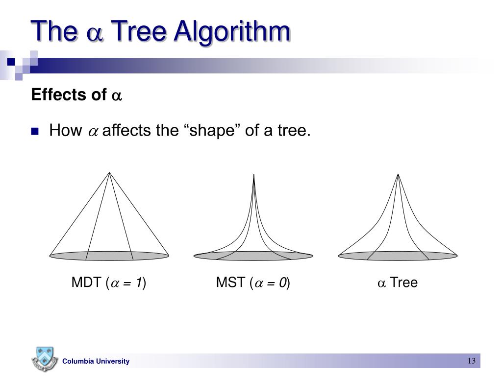 MDT ( = 1) MST ( = 0) Tree The Tree Algorithm Effects of • How affects the “shape” of a tree.
