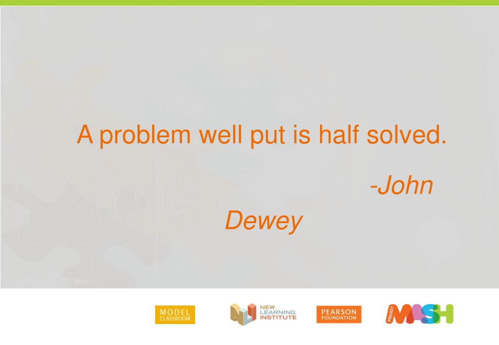 A problem well put is half solved. • -John Dewey