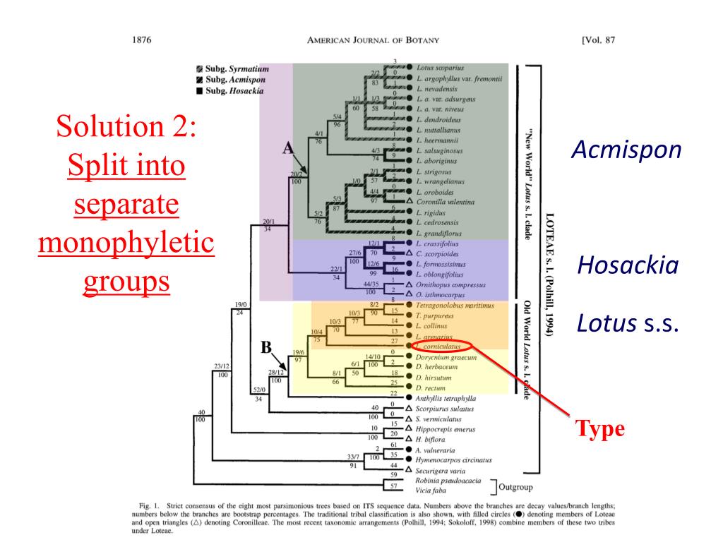 Solution 1: Unite as a monophyletic group: Lotus s.l. Lotus s.l.