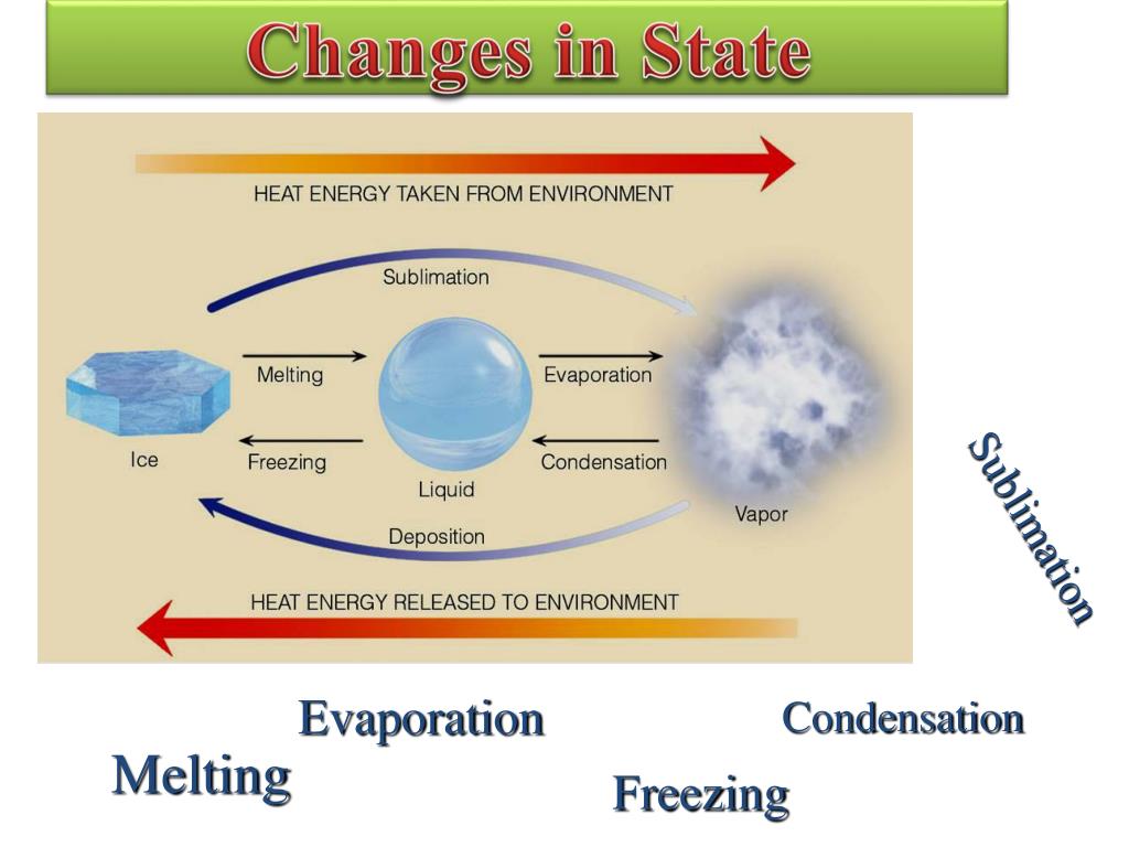 Changes in State Sublimation Evaporation Condensation Melting Freezing