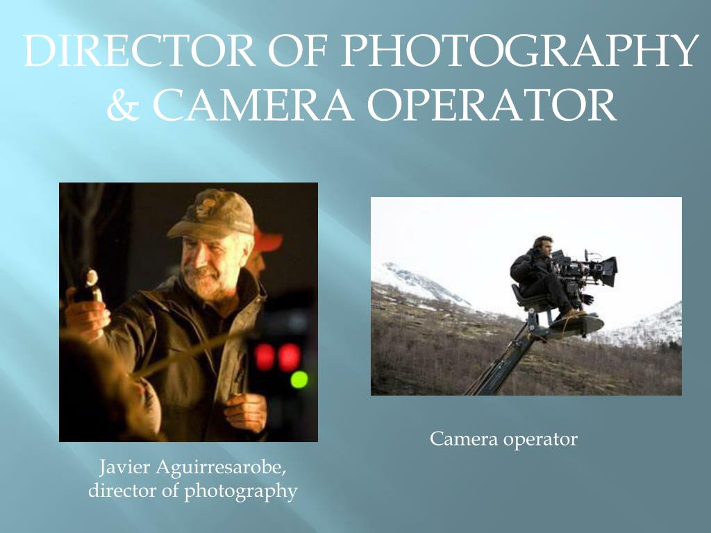 DIRECTOR OF PHOTOGRAPHY • & CAMERA OPERATOR Camera operator Javier Aguirresarobe, director of photography