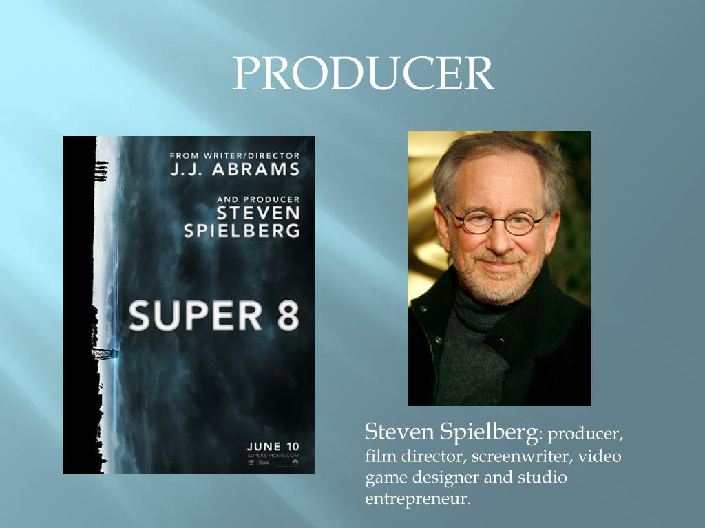 PRODUCER Steven Spielberg: producer, film director, screenwriter, video game designer and studio entrepreneur.