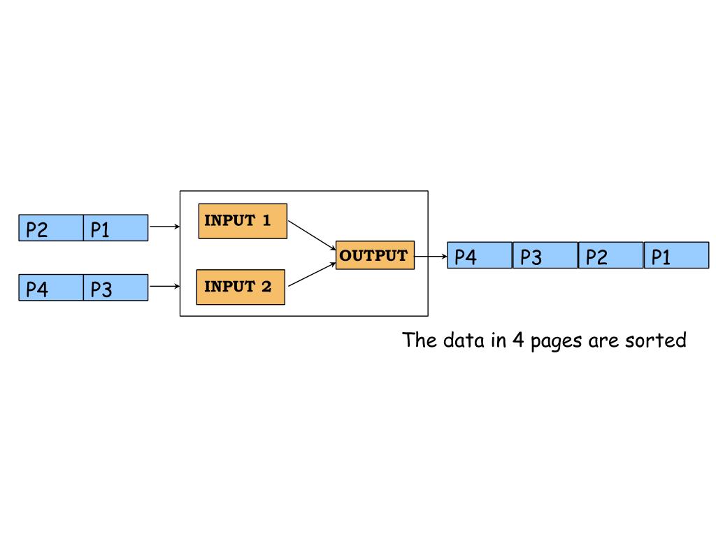 INPUT 1 P2 P1 OUTPUT P4 P3 P2 P1 INPUT 2 P4 P3 The data in 4 pages are sorted