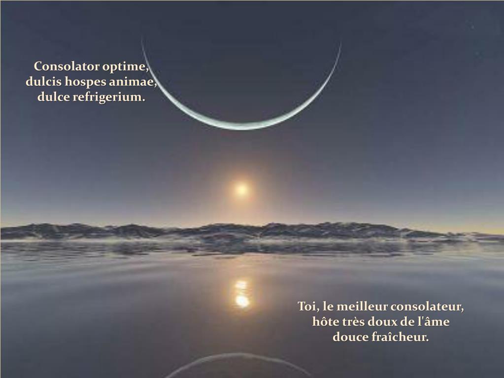 Consolator optime, dulcis hospes animae, dulce refrigerium. • Toi, le meilleur consolateur, hôte très doux de l'âme douce fraîcheur.