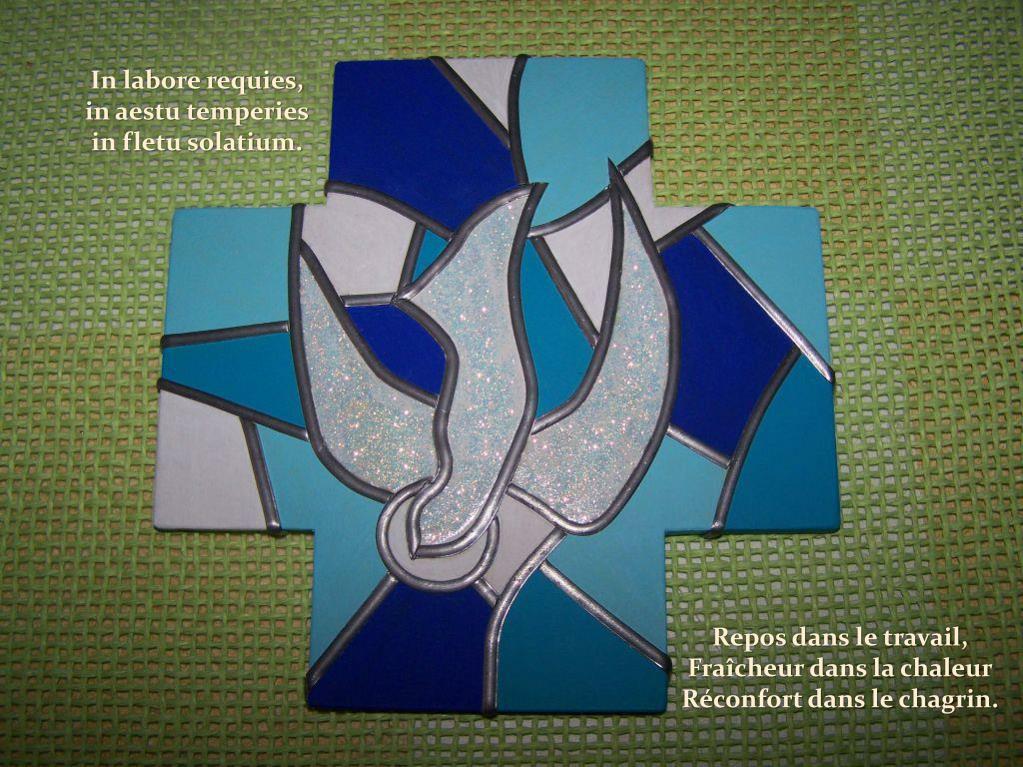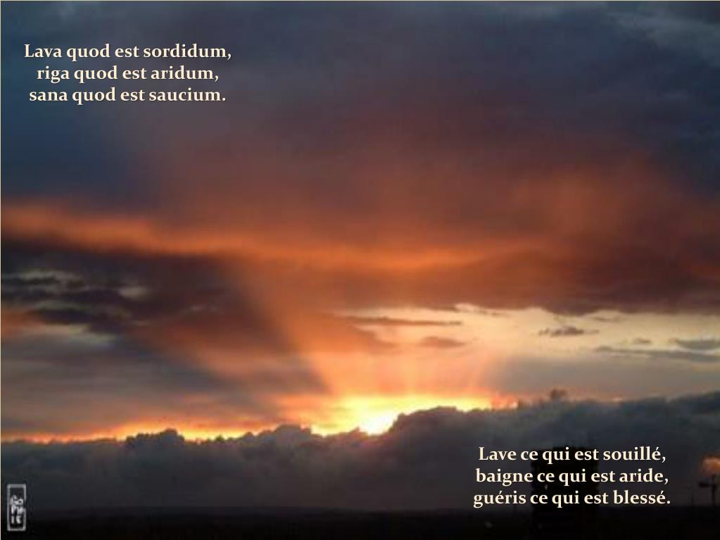 Veni, Sancte Spiritus, et emitte caelitus lucis tuae radium. • Viens en nous, Esprit-Saint, et envoie venant du ciel un rayon de ta lumière.