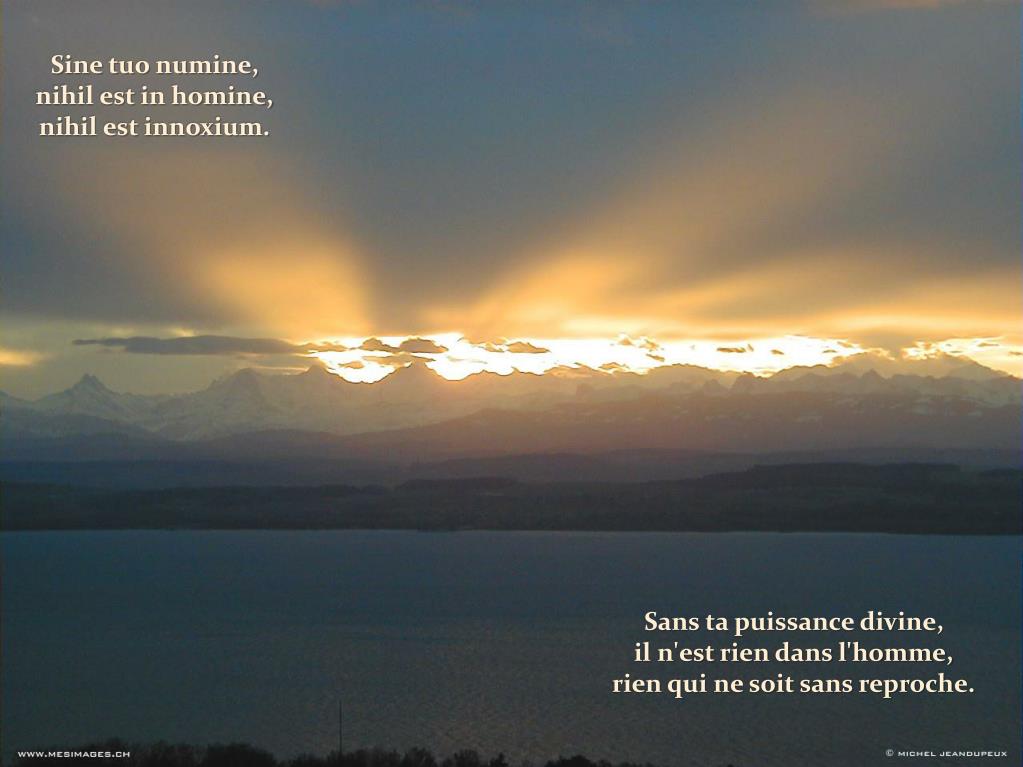 Sine tuo numine, nihil est in homine, nihil est innoxium. • Sans ta puissance divine, il n'est rien dans l'homme, rien qui ne soit sans reproche.