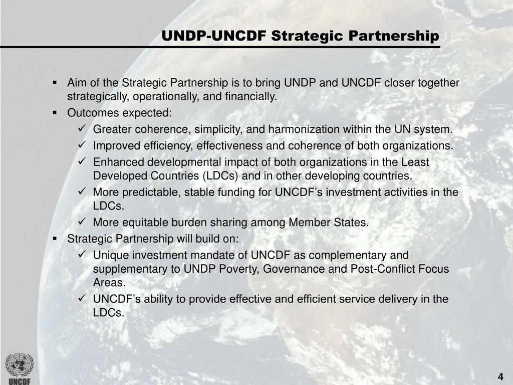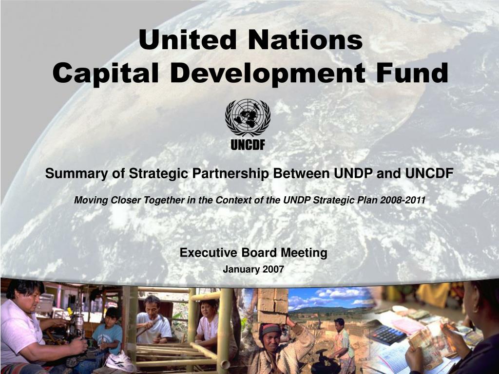 United NationsCapital Development Fund Summary of Strategic Partnership Between UNDP and UNCDF Moving Closer Together in the Context of the UNDP Strategic Plan 2008-2011 Executive Board Meeting January 2007