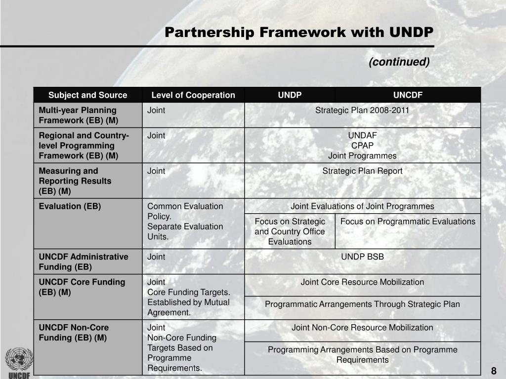 Partnership Framework with UNDP (continued)