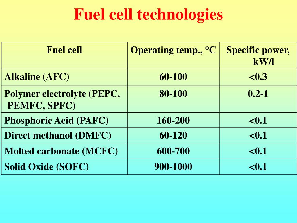 50 kW(<$ 10 000) Limitations of small chemical FC • Cost as well $10,000 – only engine! • Pt-based: • poisoning with CO, H2S etc. • low fuel versatility (H2, CH3OH) • cost & shortage of Pt