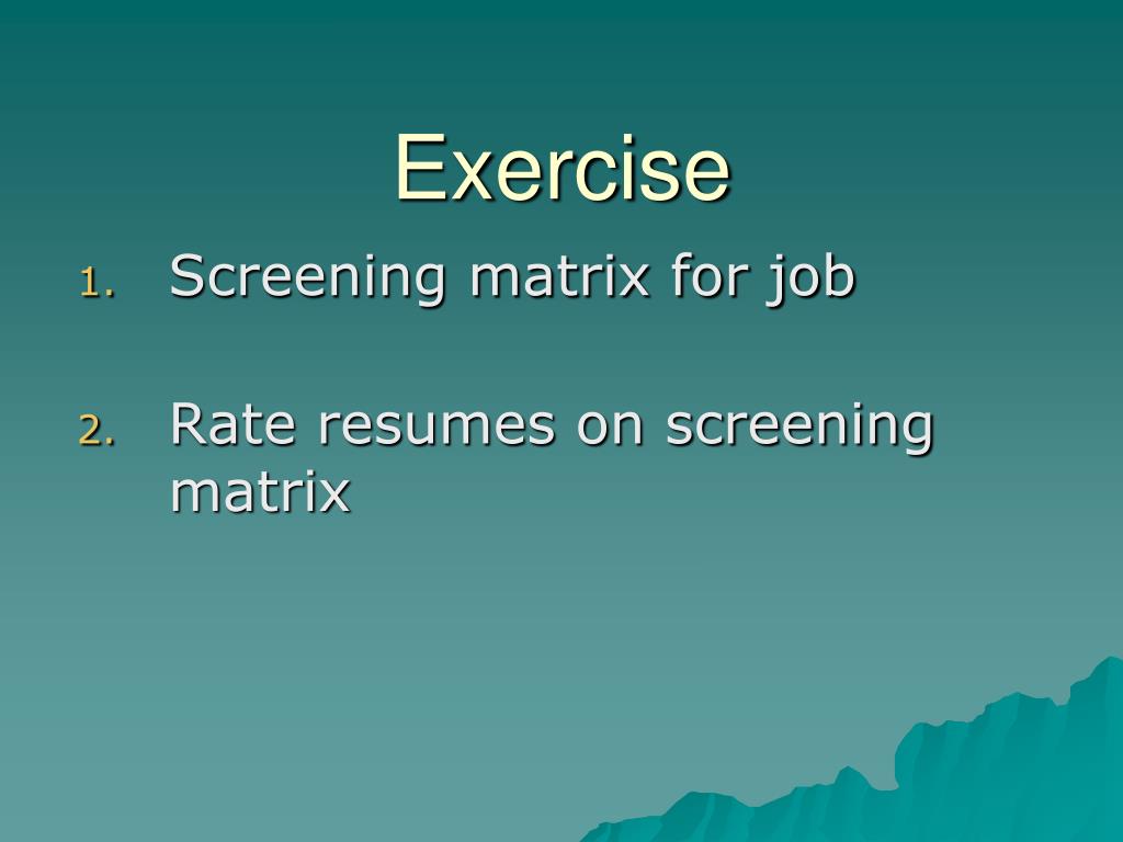 Exercise Screening matrix for job Rate resumes on screening matrix