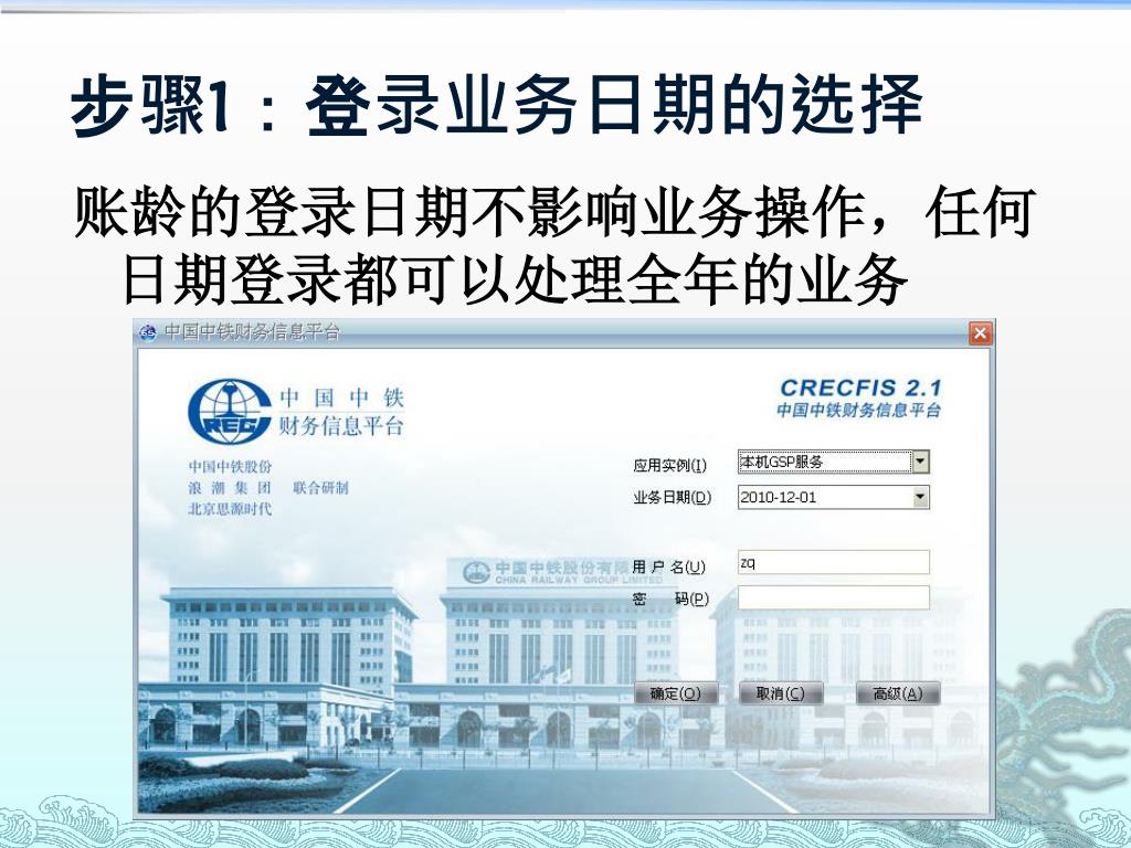 步骤1:登录业务日期的选择 账龄的登录日期不影响业务操作,任何日期登录都可以处理全年的业务