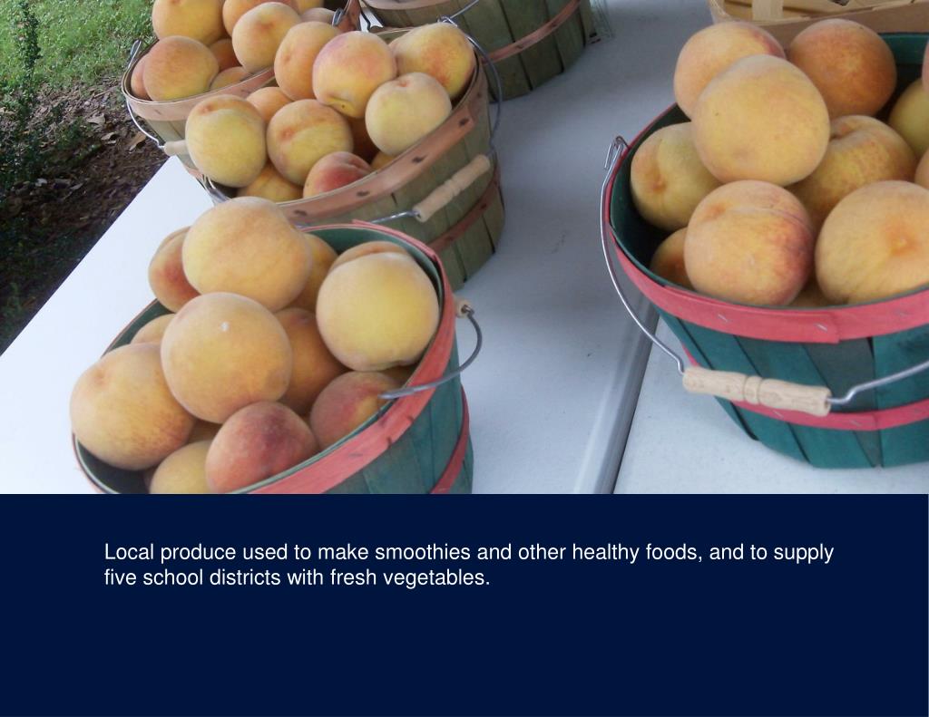 Local produce used to make smoothies and other healthy foods, and to supply five school districts with fresh vegetables.