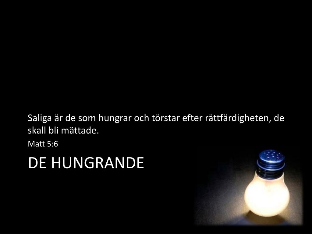 Saliga är de som hungrar och törstar efter rättfärdigheten, de skall bli mättade. Matt 5:6 De hungrande