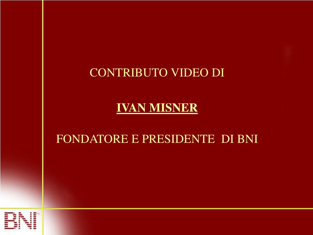 CONTRIBUTO VIDEO DI • IVAN MISNER • FONDATORE E PRESIDENTE DI BNI