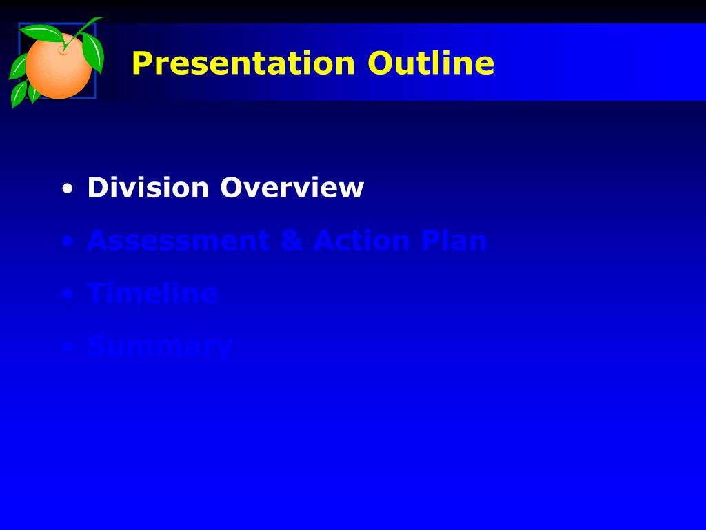 Presentation Outline • Division Overview • Assessment & Action Plan • Timeline • Summary