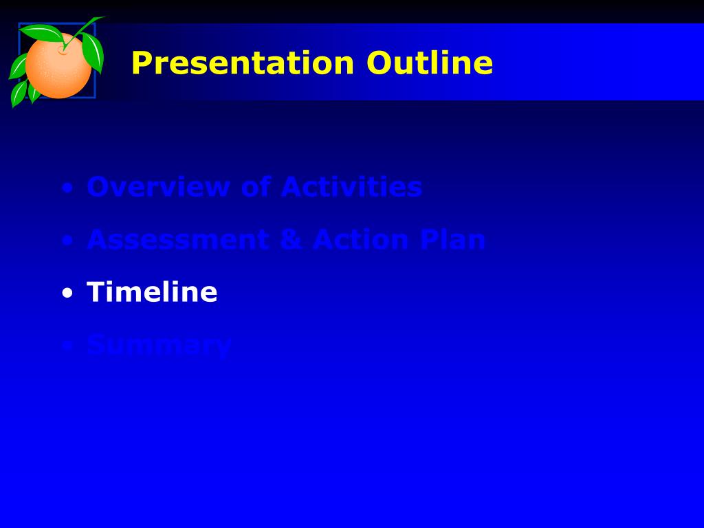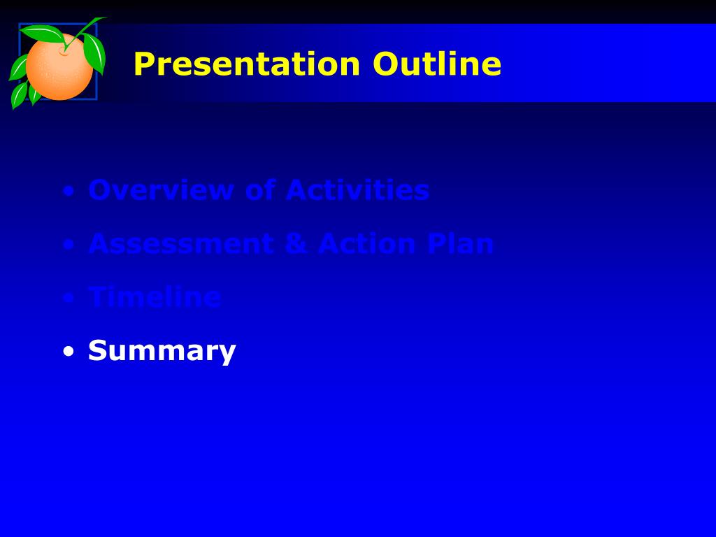 Presentation Outline • Overview of Activities • Assessment & Action Plan • Timeline • Summary