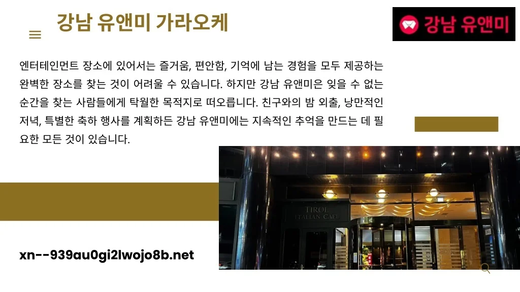 강남유앤미가라오케 엔터테인먼트장소에있어서는즐거움, 편안함, 기억에남는경험을모두제공하는 완벽한장소를찾는것이어려울수있습니다. 하지만강남유앤미은잊을수없는 순간을찾는사람들에게탁월한목적지로떠오릅니다. 친구와의밤외출, 낭만적인 저녁, 특별한축하행사를계획하든강남유앤미에는지속적인추억을만드는데필 요한모든것이있습니다. xn--939au0gi2lwojo8b.net