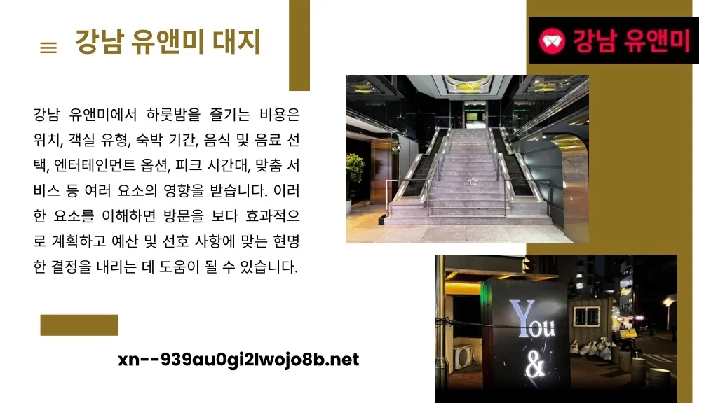 강남유앤미대지 강남유앤미에서하룻밤을즐기는비용은 위치, 객실유형, 숙박기간, 음식및음료선 택, 엔터테인먼트옵션, 피크시간대, 맞춤서 비스등여러요소의영향을받습니다. 이러 한요소를이해하면방문을보다효과적으 로계획하고예산및선호사항에맞는현명 한결정을내리는데도움이될수있습니다. xn--939au0gi2lwojo8b.net